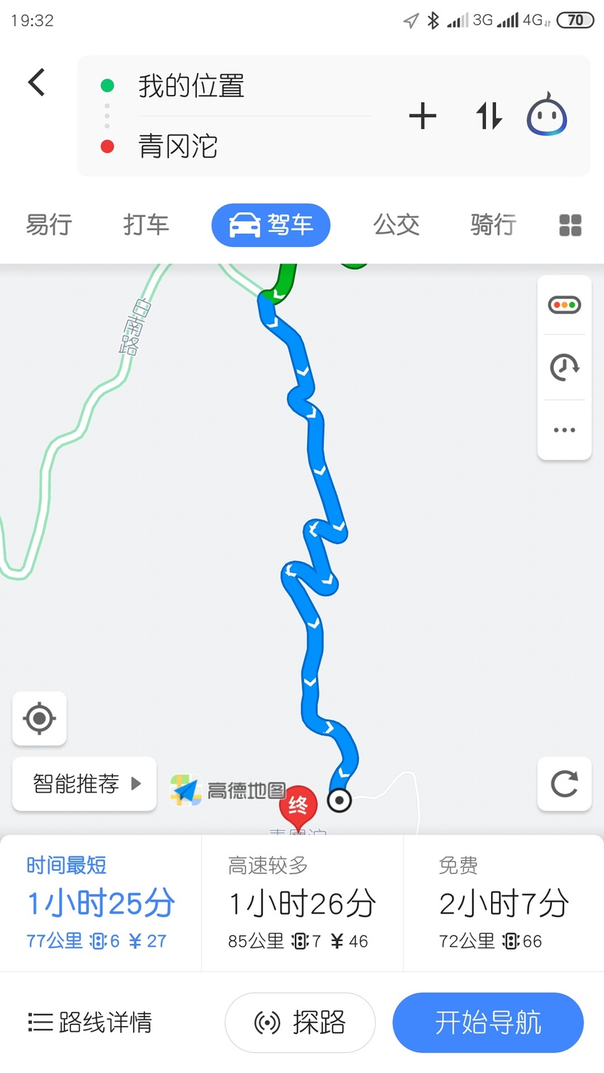 高德直接导航~青冈沱,市区过去一个半小时。