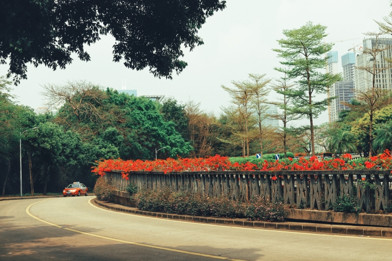 深南大道全长26公里啊,贯穿福田,罗湖,南山三个区呀。今天我这边逛的是福田去这边这段,因为听说那边有好看的花可以拍摄。平时,因为生活,我们不得不接触,甚至接受一些俗气的人和事,所以偶尔赏个花,来调节下自己,所谓 雅俗共赏??哈哈。