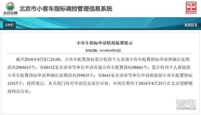 北京市小客车指标调控管理系统发布报告,截至2018年8月8日24:00,累计收到个人新能源小客车配置指标申请和确认延期指标的共359835个。这一项记录,每个人都在不断被刷新。根据2018年北京5.4万个人新能源配置的年指标来计算,新申请者将需要等到7年之后,也就是2025年才能获得新能源指标。