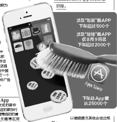 有消息称,苹果对应用商店中涉及“彩票”关键字的APP连续进行下架,数量超过500个。对于带有赌博关键字的APP,苹果公司也进行了大规模下架,其中8月9日单日下架数量超过2000个。下架总App数量达2.5万个。苹果公司没有证实上述消息及数字。北青报记者昨天在苹果应用商店中搜索关键字“彩票”,结果中仅出现4条,其开发者都是公司,并未有个人开发者。
