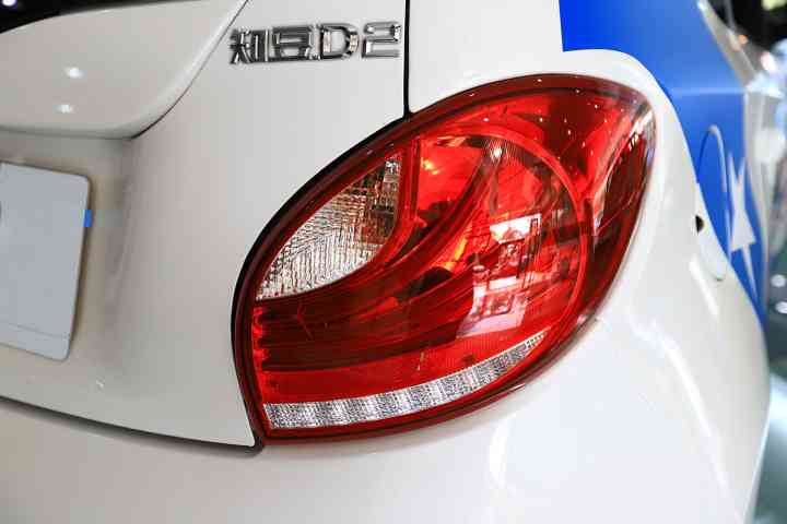 车后部设计为梯形,下方黑白的搭配也十分时尚,并且中间有搭配红色的刹车尾灯。车尾大灯元素动感、时尚,在这里看出了知豆D2并非只是可爱的也是具有动感的。