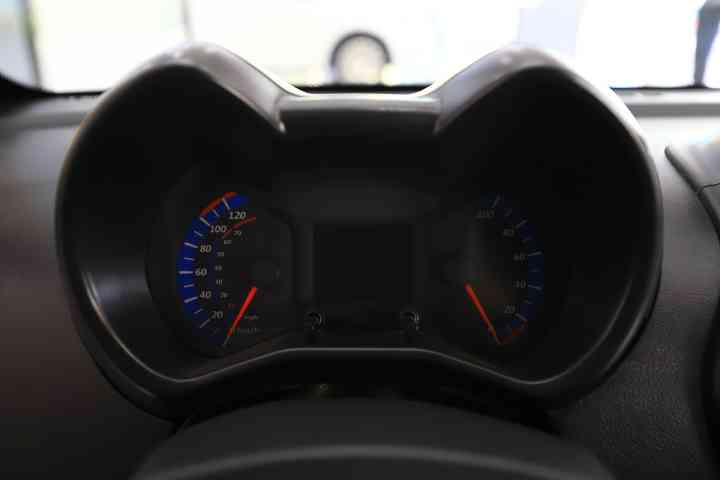 仪表盘为蓝色,搭配红色的指针很有运动感。