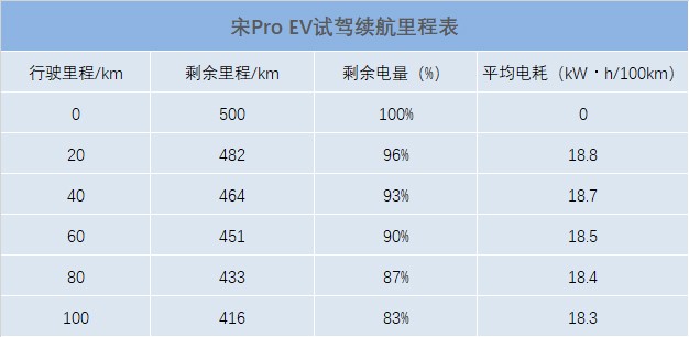 本次试驾的是宋Pro EV高功率高续航版旗舰型,电池组可以存储71kW·h的电量。从北京三里屯通盈中心洲际酒店出发,电量充满,仪表显示续航里程剩余500km。