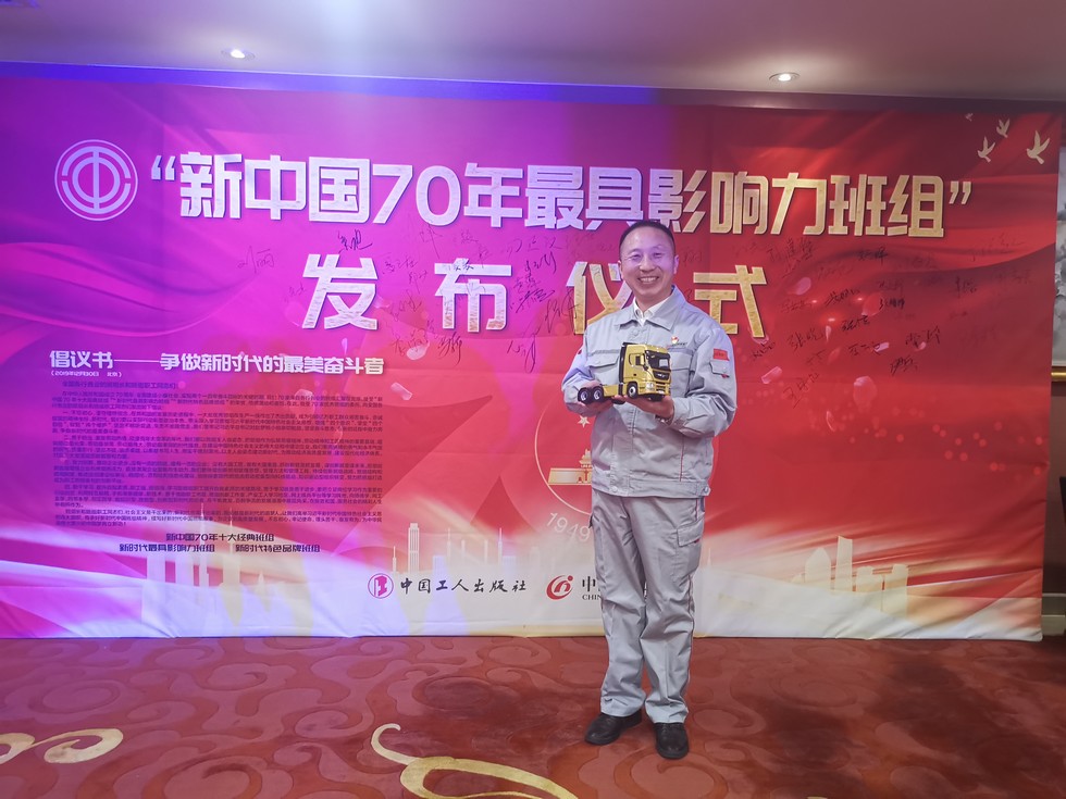 2019年12月30日,由中国工人出版社、中国工业报社主办的“新中国70年最具影响力班组”发布会暨第一届新时代班组高峰论坛在北京举行。东风商用车有限公司车辆工厂王涛班获评“新时代最具影响力班组”,全国劳模、东风商用车车辆工厂王涛班员工王建清代表班组领奖。本次活动发布10个“新中国经典班组”、10个“新时代最具影响力班组”、50个“新时代特色品牌班组”。据悉,王涛班撰写的技术书籍达三十余册、800多万字,自主制作各类小发明、小工具达100多件套。(江唯唯 寇华鑫 文/图)