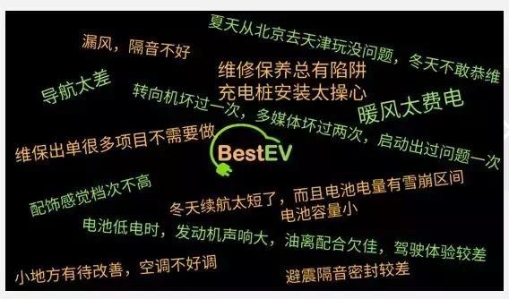 以上几款车虽然是BestEV2018年项目调研中各组最优的电动车型,但“最优”是相对的,这些车型都有不少被用户吐槽之处。