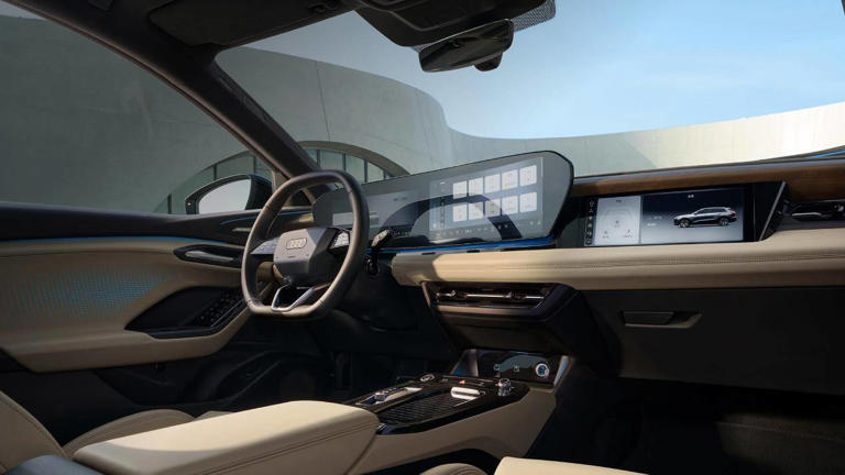 说到内饰,Q6L e-tron的内饰也是科技和豪华的结合体,不让屏幕成为主体,以人体工学为核心搭配奥迪的经典设计,让屏幕融入整个内饰设计,11.9英寸液晶仪表外加14.5英寸中控屏主要服务驾驶员,副驾位置也有10.9英寸副驾娱乐屏,丝毫不逊色于新势力。