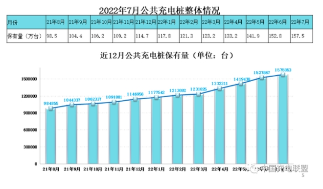 充电桩作为新能源汽车使用的重要保障,也在跟进新能源汽车发展的增速。8月11日,中国充电联盟发布2022年7月全国电动汽车充换电基础设施运行情况。