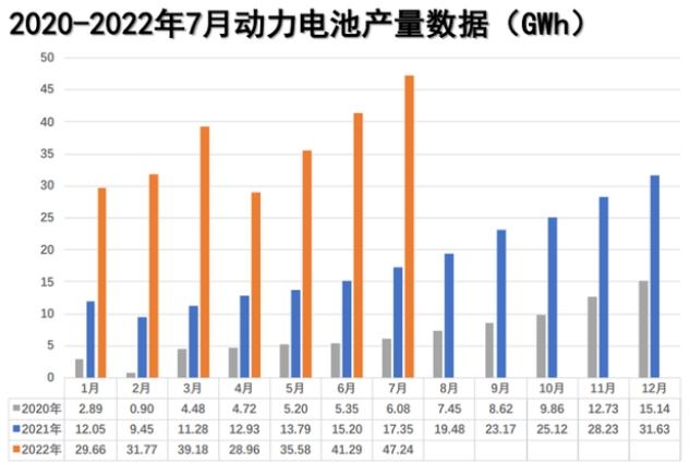 日前,中国汽车动力电池产业创新联盟公布今年7月动力电池月度数据。数据显示,7月我国动力电池产量共计47.2GWh,同比增长172.2%。1-7月累计产量为253.7GWh,累计同比增长175.6%。