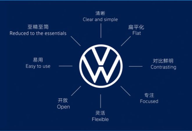 为迎接新能源汽车时代,大众汽车采用了全新品牌logo