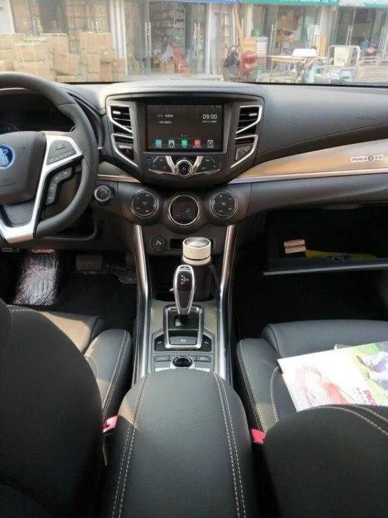 中控全景图,中控是安卓系统的可以随便下载软件。副驾驶前面是PM2.5绿净系统水杯上面是双区空调。重要的是按键全是汉语标识。