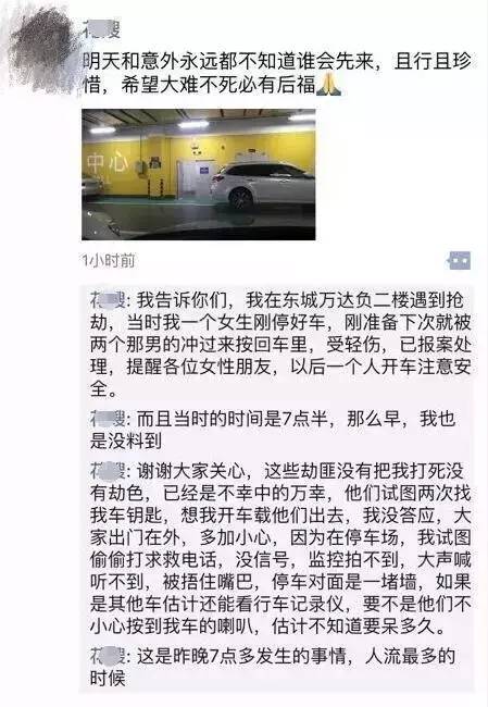 今年六月中旬,一名女网友在微信朋友圈中自述在地下停车场里的遭遇。时间是晚上7:30,人流量不算少的时候竟然都被歹徒伤害,如果要是深夜恐怕会更加危险。
