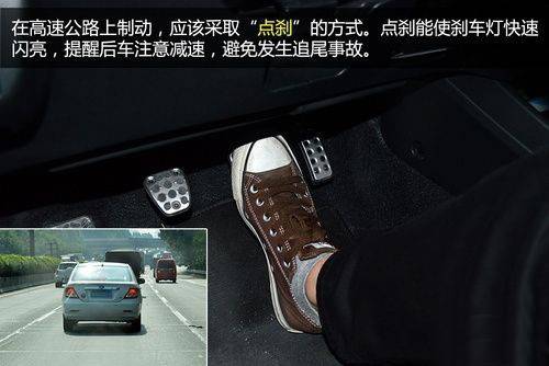 七、高速公路上行车,如遇到事故而被迫采取紧急制动,跑偏和侧滑的几率都会增大,汽车方向很难控制。这时应该多次轻踩制动踏板,这种点刹可以使制动灯快速闪亮,引起后车的注意,并且制动效果也相对比较好。