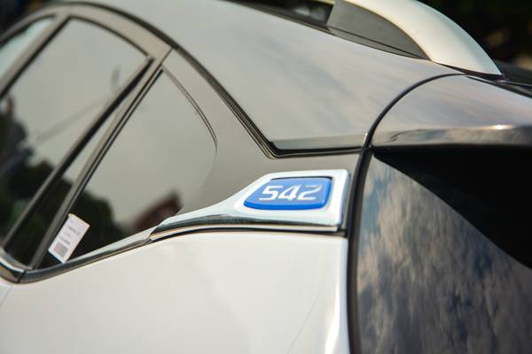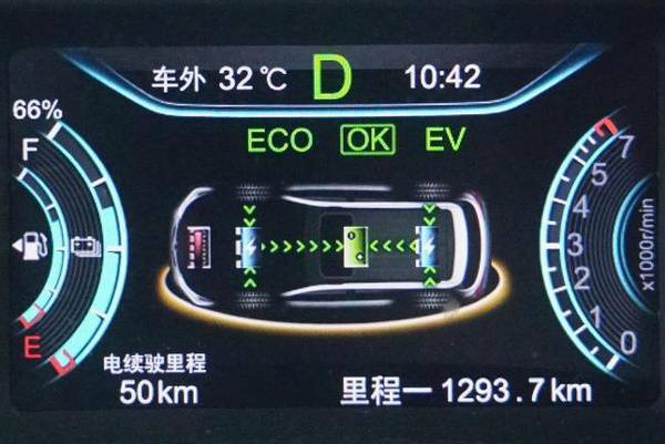 后来我才知道,它和超跑的关系,全都标示在黑色车顶和白色车身交汇处的那一块徽标上:542。简单来说,“5”,便是0-100km/ h加速时间5秒以内;“4”,是指全时电四驱;“2”,意思是百公里油耗2L以内。真有这么神奇,真有这么霸道?再钻进车里,再看看“鸡腿”档杆后面,简洁有序的排布着按键和旋钮。左右两颗按钮,分别对应倒车雷达、陡坡缓降的开关;后面一排按钮,则对应选择普通、沙地、泥地、雪地四种模式;最后一个旋钮,可以选择ECO节能、SPORT运动模式;旋钮两边的按键,又分别控制着EV纯电和HEV混动模式。迫不及待想要试一试了。