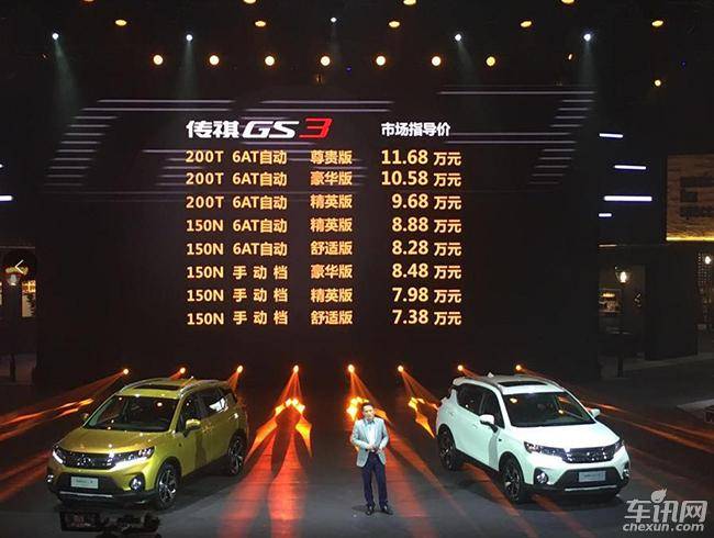 【车讯网 报道】SUV市场的火爆也让这个市场的细分车型变得更加丰富,从注重空间的大型7座SUV到更加适合年轻人的小型运动SUV,消费者们都有很多选择,那么在最近的成都车展上,传祺在去年上市大型7座SUV传祺GS8之后,也为大家带来了一款更加适合年轻人的小型SUV—传祺GS3。主打年轻人市场的小型SUV传祺GS3的售价为7.38万-11.68万元,共有8款配置。