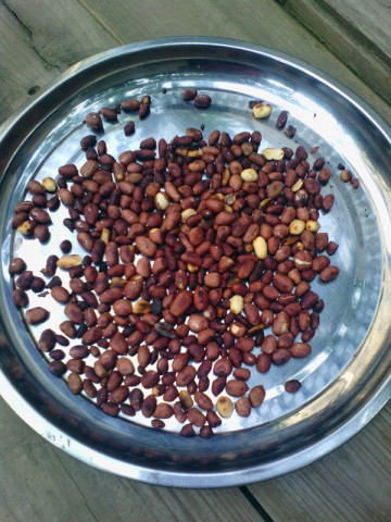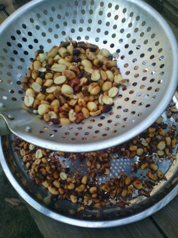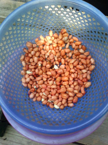 5. 花生米不烫手时趁还有热度用手搓掉花生衣