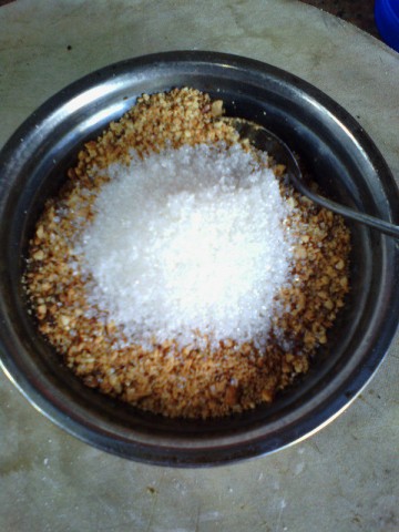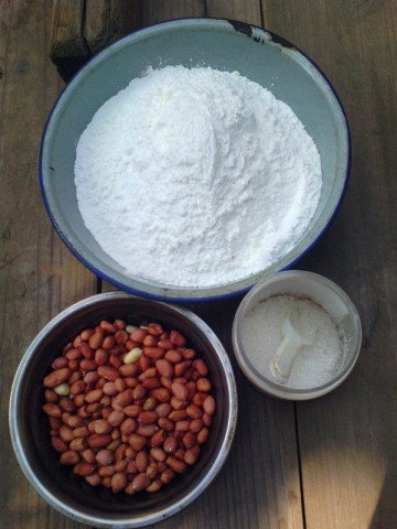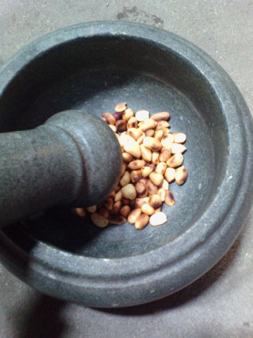 9. 把花生仁放入石舀捣碎