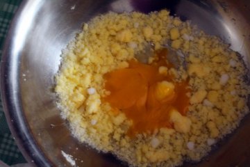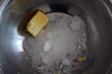 1. 黄油软化以后,加入细砂糖、奶粉、盐,搅打均匀。