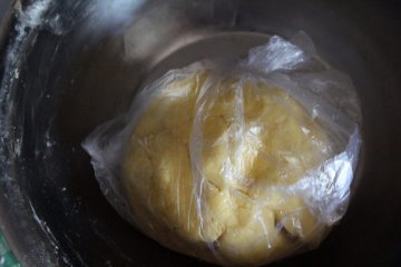 6. 用手揉成一个面团。(如果太粘手,多加点扑面)揉成团即可,不要揉太长时间。揉好的面团静置松弛半个小时。