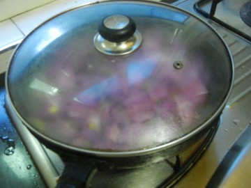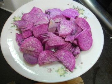 1. 准备好紫山药(买的时候,卖家就去掉皮了)