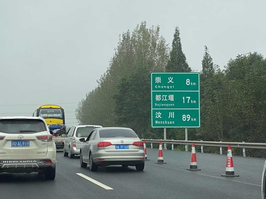 出发的时间成都还淅淅沥沥的在下小雨。凭借我在成都早晚高峰锻炼出来的绕堵能力。很快的就上了成灌高速了。但是在高速路上因为修路堵车堵了半个小时。