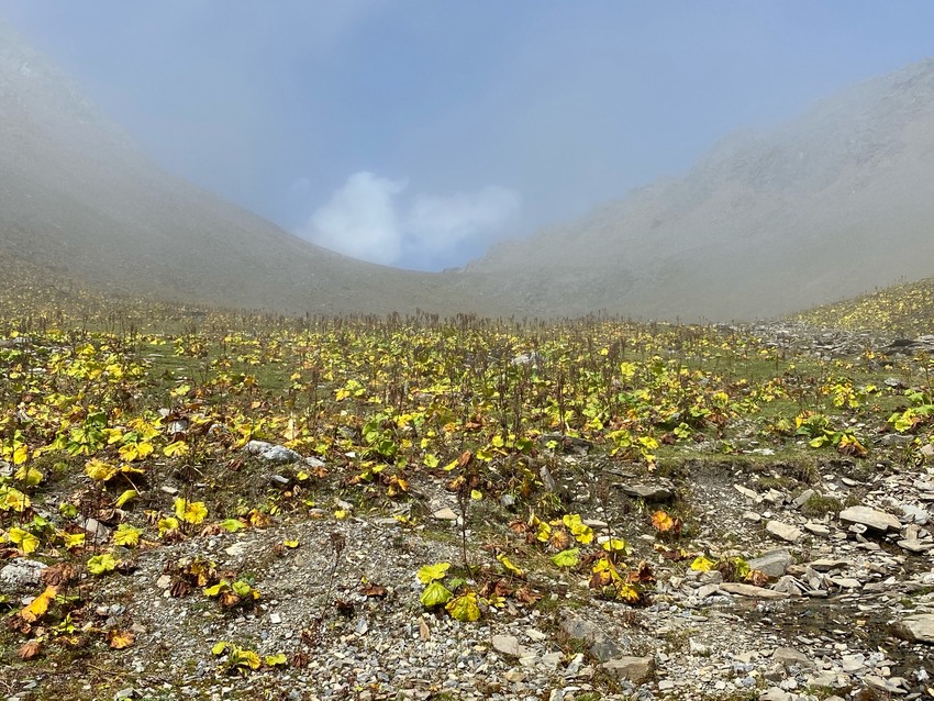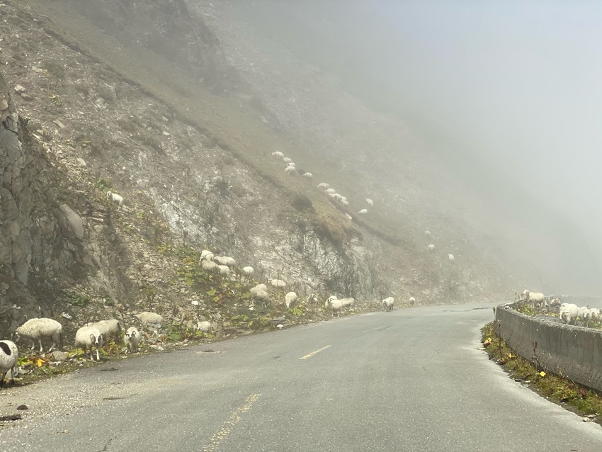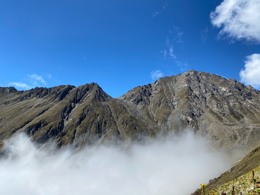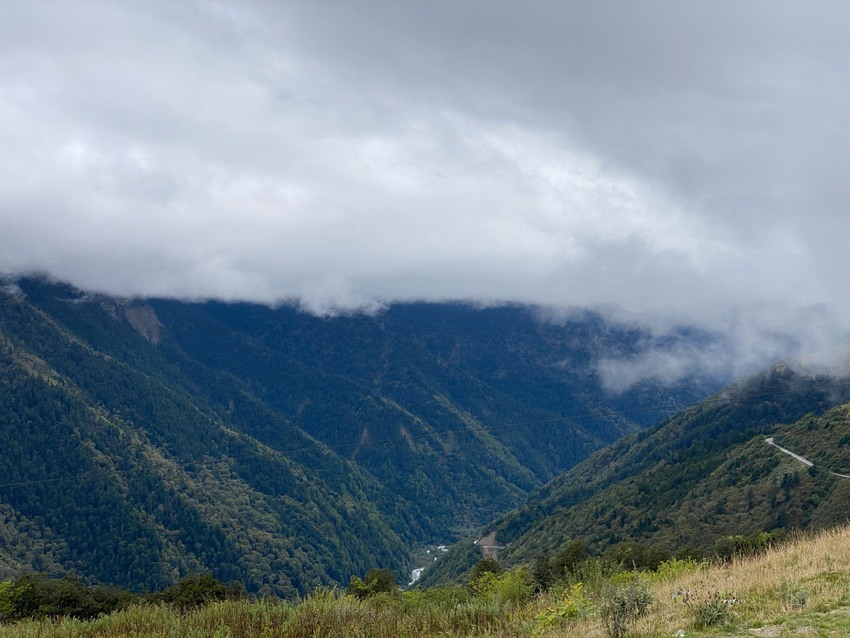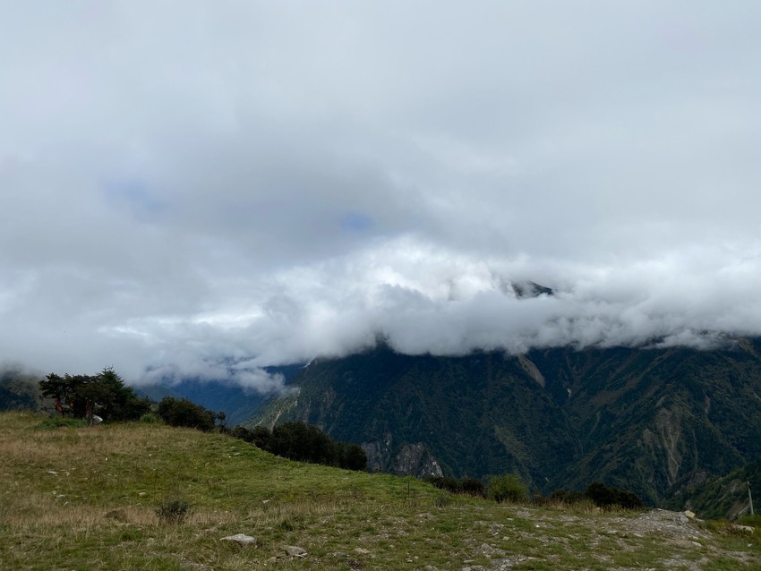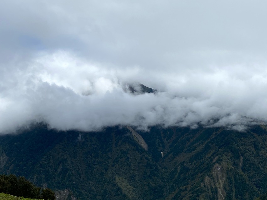 过了耿达。吃点东西解哈馋。行至半山腰就是很浓的雾。但是太阳总能后穿过浓雾时刻给我希望。继续小心往前。