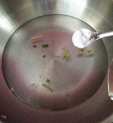 5. 煸香葱香后加入:清水与半小勺食盐