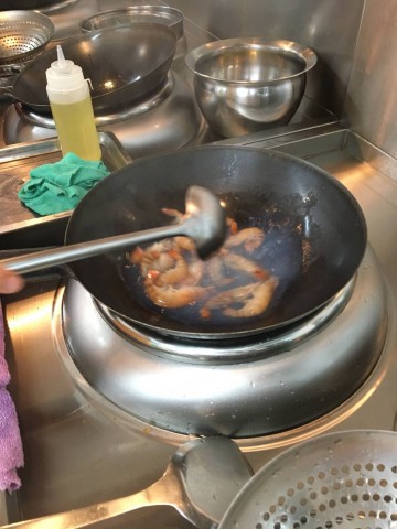 4. 起锅姜蒜加汁生抽虾 翻炒一会就好。