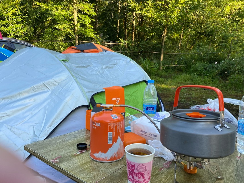 还好头天到的白鹿上头耍水,莫得人打挤,晚上在中坝露营,晚上10点半了才搭帐篷,人太多,没得木板地了,只有搭到泥巴地上头,飞虫有点多
