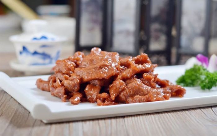 源于西域的清真菜也继承了阿拉伯人好食甜味的传统, 它似蜜、扒口条都是清真甜口菜的代表。而 糖耳朵、炸糕、艾窝窝、糖火烧等北京特色甜味小吃也以清真饮食店所制最为美味。