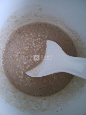 4. 随后不要客气,用勺子狠狠搅拌,到大部分破碎