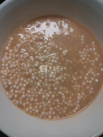 5. 然后是透明的一层,1大勺西米加水浸泡过夜,同样的方法搅碎