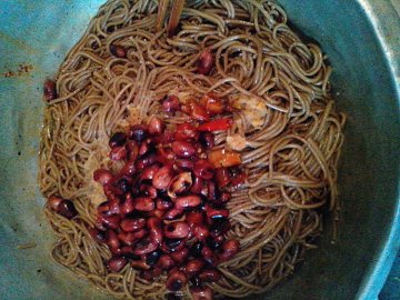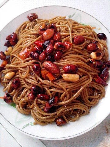 7. 倒入蒜水,花生米,香醋,盐等调料