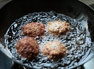 3. 做成四个大丸子,用温油炸金黄色