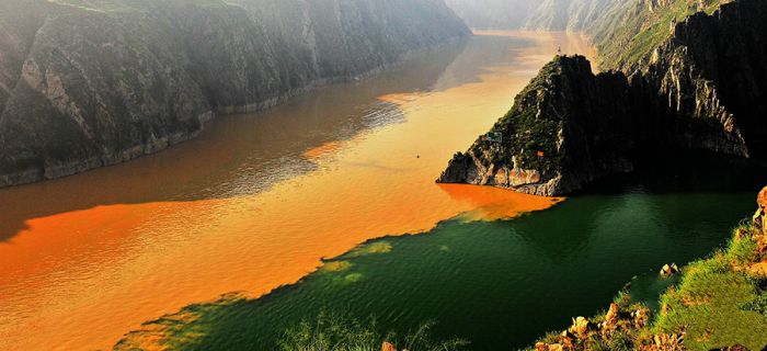 甘肃永靖县境内,洮河与黄河交汇处,水面上出现了明显的黄、绿两色分界,交汇后并没有融合为一体,而是继续保持双色前行,堪称世界奇观。原本黄河是青绿色,因夹带大量泥沙的洮河侵入,才使之渐渐失去了原有的碧绿、清澈和纯净。