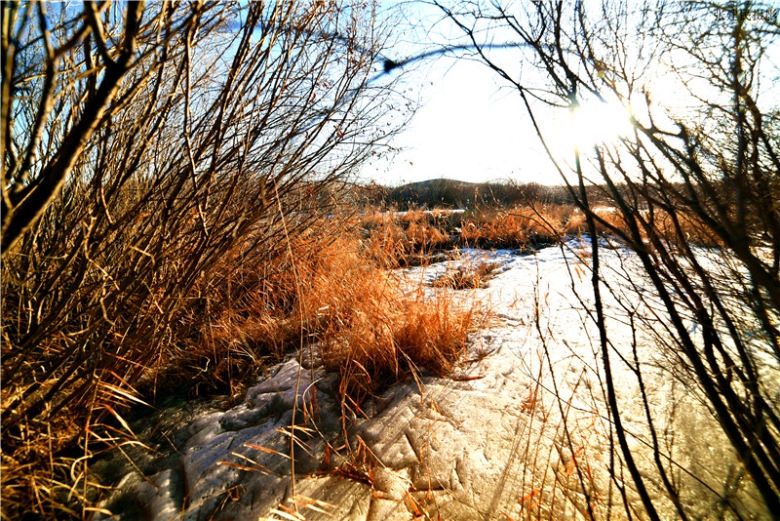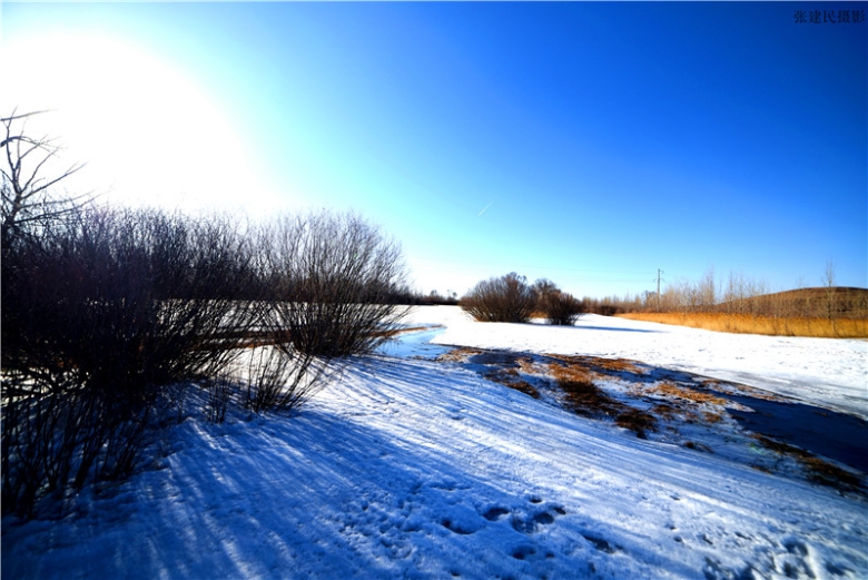 道弯水湾路弯弯,鸟影树影雪莹莹,别是一番风景地,想取美景到多伦。