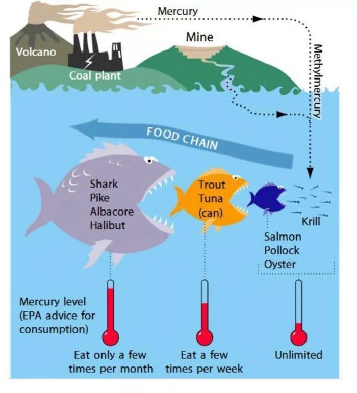 鱼类及海产品味道鲜美,营养丰富。还能提供人体必需但自身合成不足的 EPA和 DHA,是受人们欢迎的食品之一。但由于海洋生物的食物链富集作用,使得汞的污染无法忽视。