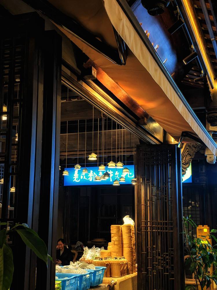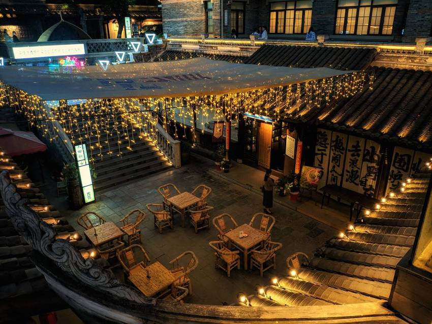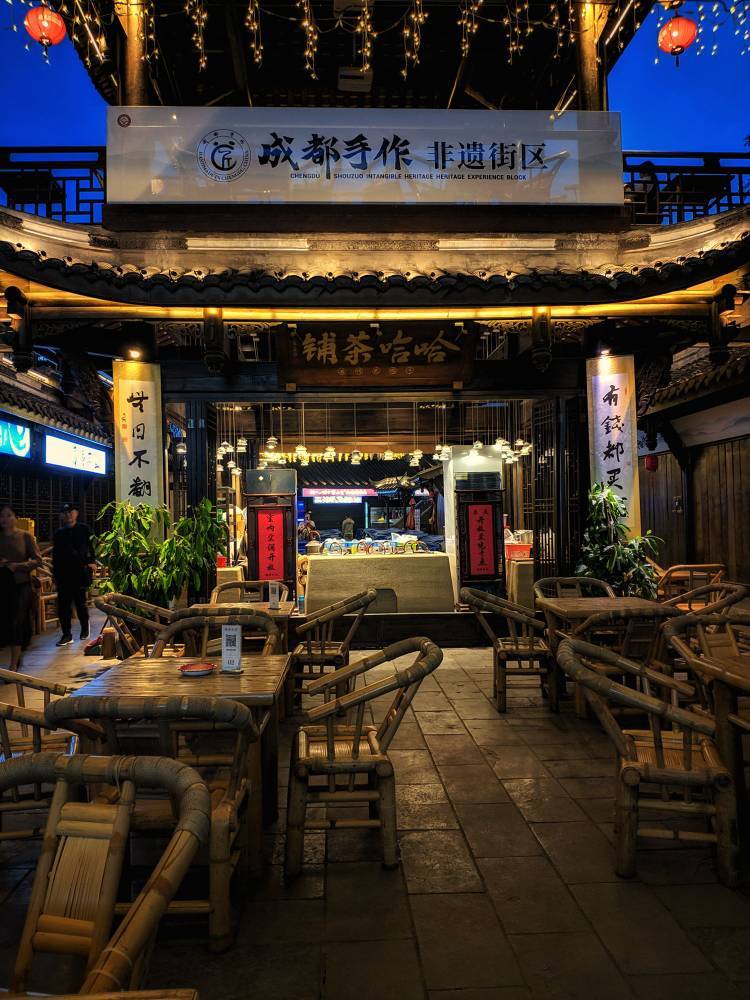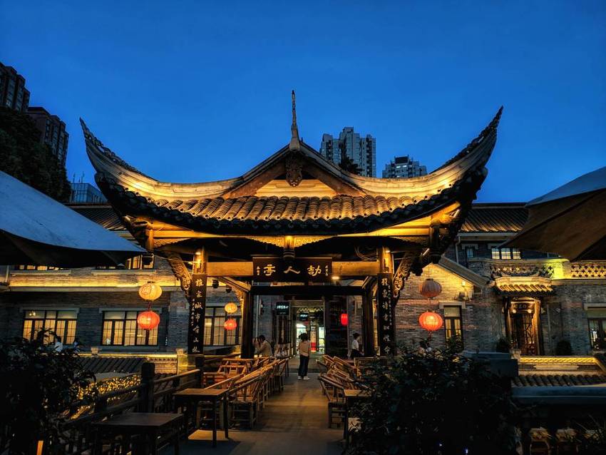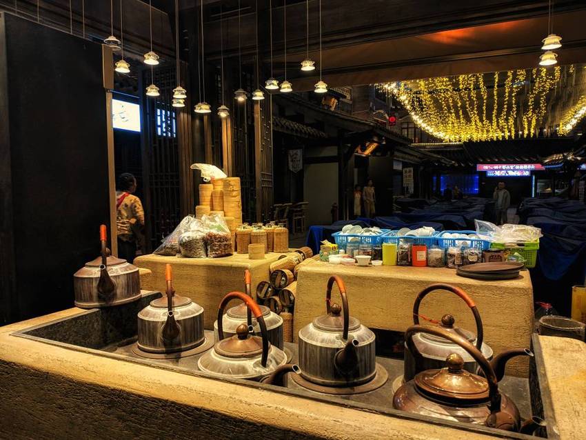 东门市井,老成都市井文化体验街区,跟李劼人故居比邻而建,以李劼人先生笔下的老成都市井生活场景为中心,通过公馆建筑群,下层集市广场铺板小馆,老式茶铺,凉亭水榭等,生动再现老成都的市井生活场景。