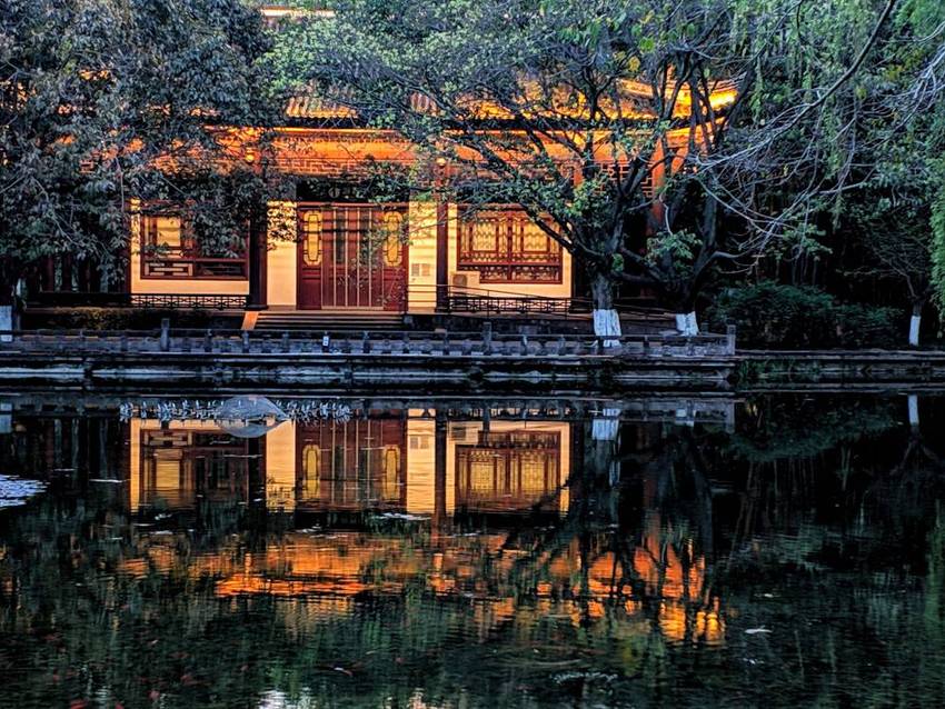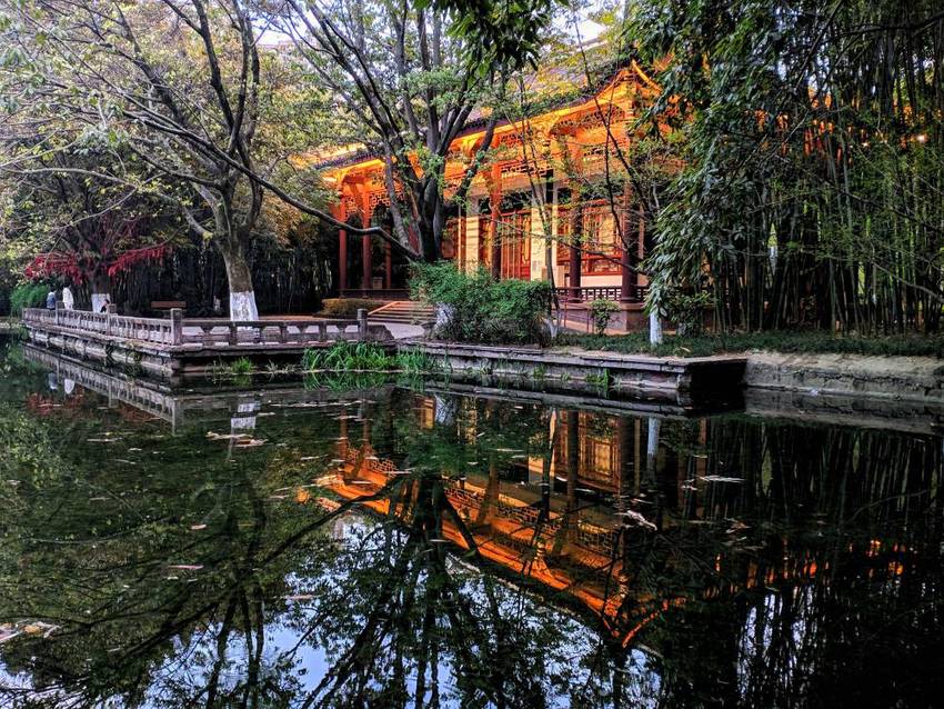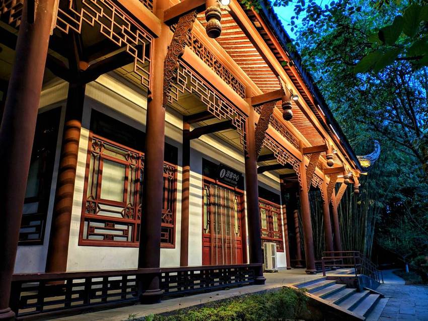 望江公园都不知道进去了好多次,但从来没有晚上进去过。夜晚的春风还有几分凉意,街上的行人脚步匆忙。进入公园后,宁静的竹林让我忘却了乍暖还寒的微冷,园内游人和白天的相比,少了很多。园区内的小路上灯光有些昏暗,感觉像是给安静的公园又披上了一层神秘的面纱。