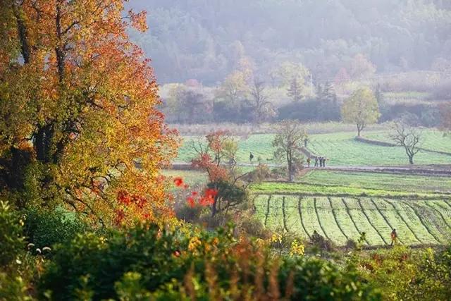 秋分给山林套上色彩浓艳的礼服,给她一种成熟的美,绚丽、大气、壮观,一层金黄,一层火红,一层深绿,一层浅紫,一层暗黄,一层浅白,搅动着,翻滚着……它疯狂跑过田野,使得果实红润,四野飘香。丰收的背后,我们体会到艰辛和汗水,也深深感受到秋天平稳成熟的韵味。