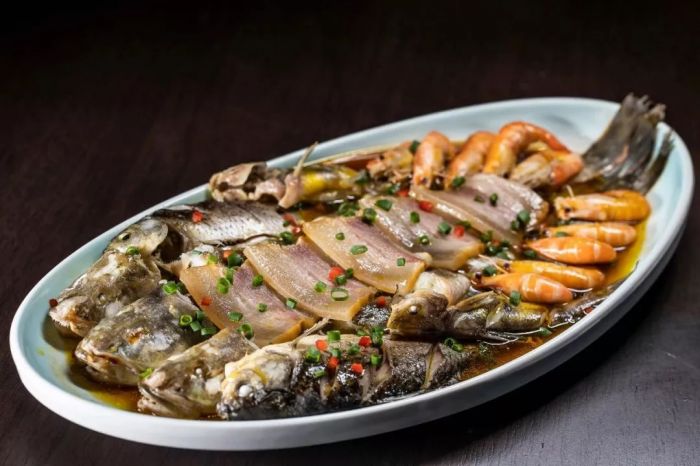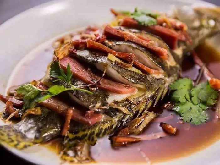 ▲ 开化白腊肉蒸江三鲜