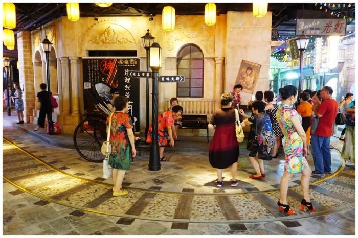 旗袍、高跟鞋、珍珠项链,盛装而来的阿姨们站在“街景”前拗造型,“长枪短炮”加上手机,留下老上海风情的倩影无数。