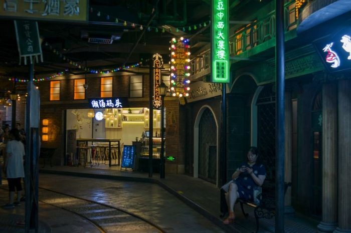 “呜——”“复兴号”货轮远洋归来,船坞码头旁,一辆灰绿色“铛铛车”缓缓驶来;“永安百货”“大新公司”的彩色玻璃窗和欧式小阳台前,走过旗袍女子;墙角停放的二八自行车,装载着小伙儿和姑娘的青葱岁月……从轨交世纪大道站出来,走到世纪汇广场LG2层,仿佛从现在穿越到了上世纪。