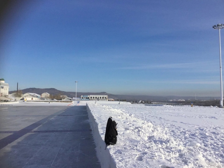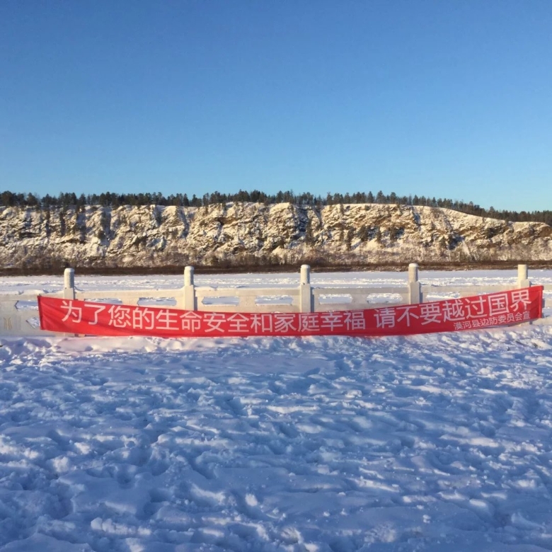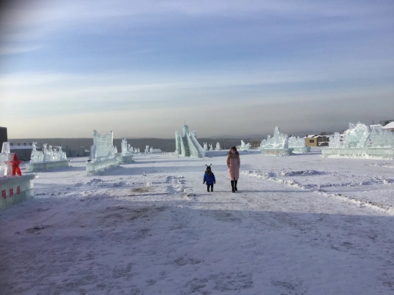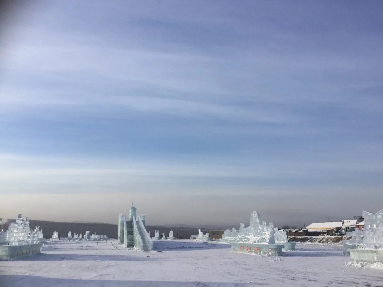 冷。冻。整条黑龙江都冻住了,都是铺满了厚厚的一层雪,江的对面就是战斗民族——俄罗斯。对面的光秃秃的,感觉会比这边还要冷。去了江边和国界碑合了影。手拿出来不到一分钟,我觉得如果继续待在那里,我的手指可能就会断掉了,因为感觉不能弯曲了,可怕。连忙撤离。拍的照片很少,因为真的很冷,拍了寥寥几张,我明显感觉手机的反应迟钝了许多,宛如一个智障。反正,我就是到处逛好啦,很喜欢的这种感觉啊,极度的寒冷。江边上还有工人在雕刻冰雕,真是辛苦他们了,我们这边还有好看的冰雕,对面的俄罗斯就全是光秃秃的山林,还是我们这边好看点。