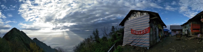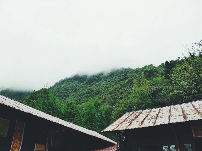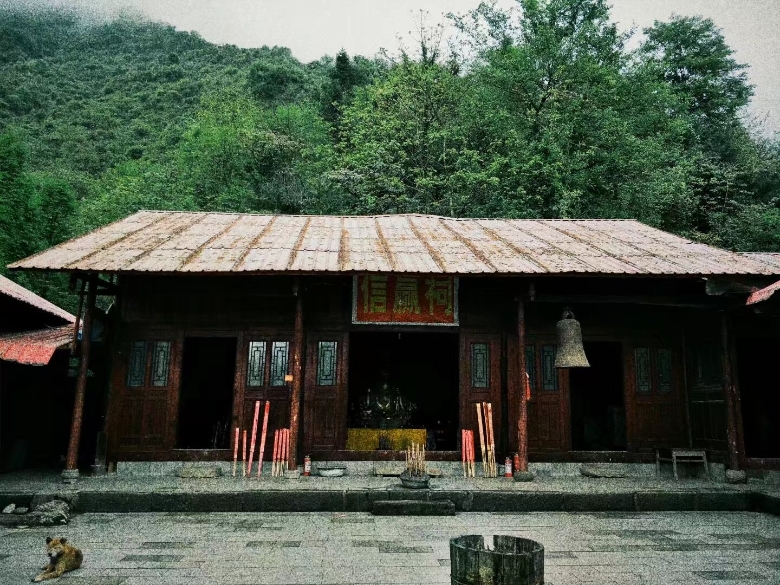 终于,到达了半山腰,迎接我们的是一只小黄狗,看到我们了就摇着尾巴走了过来,仿佛在说:“可以嘛小伙子”。。。哈哈。庙宇两三间,中间供着一尊神像,不知是谁人的信仰。站在坝子中间抬头看了看云雾缭绕的山顶,是我向往的地方,是我今天要去的地方,青山,格外青。好啦,又准备出发啦,补充了一点能量,继续我的登山之行。