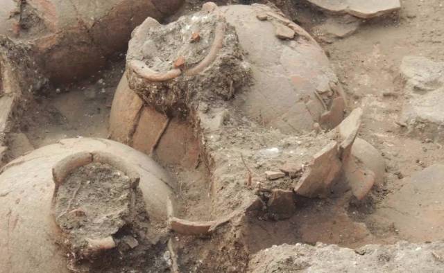 以色列迦南宫殿遗址中出土的3700年前用于保存葡萄酒的陶罐