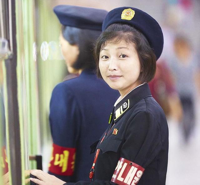 7、朝鲜地铁是朝鲜人的脸面,这里的乘务员清一色的美女,并且脸上始终挂着笑容。我们对着她们拍摄,她们对我们微笑,没有逃避。估计是单位上有交代,要保持良好形象。