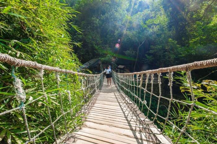在不破坏树屋村原有模样的情况下,人们对其进行了一系列的扩建、改造。最终形成了今天这番“原始森林部落”的模样,也才有了现在这样林间仙境般的风景。在葱茏大树的掩映下,它所散发出来的那种与世无争的纯粹吸引了无数在都市里满身疲惫的人来此修养身心。