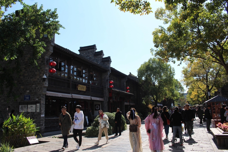 走在街上,时不时看到身着汉服的美女从身边走过。此刻人就是景,古装美女完美的融入了这片灰瓦白墙之中,竟然也毫无违和感。