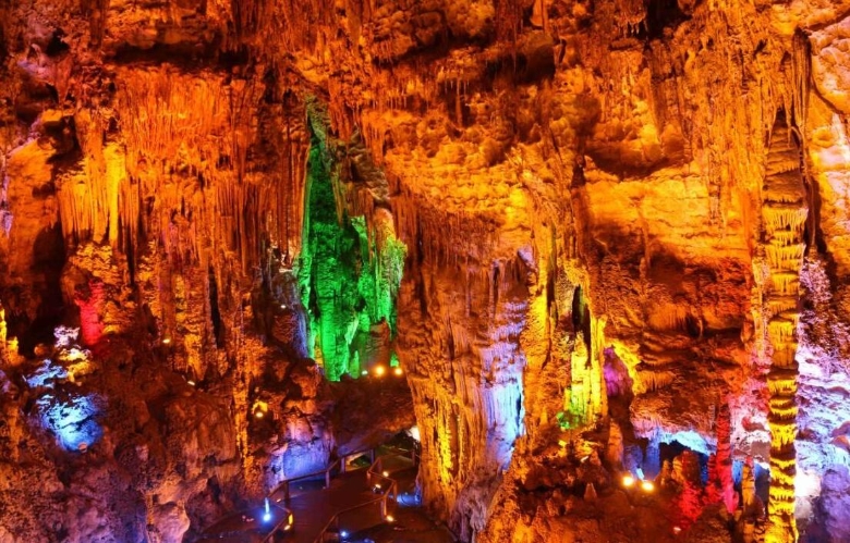 狮子洞位于牛角嵌北3500米,可游面积约7万平方米,由三殿、七庭和“洞中西海“、“洞中栈道”等十二大景观组成。主洞深2000余米,高30—80米,洞内塔柱林立,阴河幽邃,四壁乳石满布,形状神奇,气势宏伟,置身洞中,令人顿觉庄严肃穆。其中的“乳石莲花”、“定海神针”、“珍珠玉盘”、“金龟戏水”和古水文线遗迹堪称绝景。 [6] 宋家洞位于牛角嵌西北1000米,呈半月形,入口和出口从同一方向上进下出,可游面积约3万平方米,全洞分三室、八庭,洞景玲珑精巧,颇有江南园林之风。洞中曾发现巴人遗迹,当地群众称该洞为“远古穴居”。朱学稳教授考察该洞说:“这是我迄今发现的石钟乳景观色泽最好、观赏价值最高、盾群组合最完美的石盾大厅,在国内外实属罕见!” [6] 龙湖洞位于诺水河风景区“别有洞天”核心牛角嵌内。洞道总长2000余米,分上、中、下三层,可游面积5万平方米,主要景点有“界河”、“龙湖”、“喊泉”、“鹅管群”、“古城堡”、“生命之源”等。真可谓洞中有洞、洞上有洞,水府迷宫游人荡舟堪称人生快事。该洞是历朝以来,方圆数百里内川陕边境地方官和老百姓天旱求雨之地,洞内完整的保存着数百条明清以来的取水题记。 [6] 楼房洞洞长2000余米,可游面积在8万平方米以上,1000余米的阴河流水,数个神奇的巨型乳石瀑布,组成立体多层次的观赏图。朱教授考察该洞说:"楼房洞的水母石、马牙石、发光的方解石、凸出的遂石、水晶花以及尚在生长的鹅管等观赏价值很高,特别是偌大的乳石水帘瀑布,堪称一绝!"全国著名诗人、词作家梁上泉诗云:"乳流飞大瀑,奇绝聚楼房。万物显千态,神思绕洞乡。"楼房洞全长约2000余米,可供游览面积8万平方米以上,洞中三层洞道,六个独成体系的景区,1000余米阴河流水,3000平方米以上的四季不盈不虚的湖水,数个神奇的巨型钟乳石瀑布, 少有的洞内温泉组成立体多层次游览图。中国洞穴协会会长朱学稳教授考察后题的“诺水一绝楼房洞”,全国著名诗人、词作家梁上泉先生观后即兴题诗云:“乳流飞大瀑,奇绝聚楼房,万物显千态,奇思绕洞乡。”洞中仙境,飞鸟秋鸣,瀑布静泻,温泉融融,洞外大型停车,漂流源头,山野特色餐饮,优质的服务,定让人身心两醉,乐而忘归。 [6] 楼房洞地理位置楼房洞距通江县城80公里,离川陕界6公里,一切车辆可直达洞口停车场。地处国家重点风景名胜区——诺水河风景区的核心位置。它的洞口因从外看去,可见上下两个洞门重叠相连,形如楼房而得名。通江县素有“一府三乡”(川陕革命根据地首府、溶洞之乡、红军之乡、银耳之乡)的美称。诺水河风景名胜区内金童山至中峰洞为腹心地带,沿河两岸奇峰突兀,峭壁如削,颇有桂林景致、三峡险趣,其间地下溶洞密布,洞洞相连,洞中有洞,已初步探明景区溶洞128个。楼房洞旅游价值楼房洞内除了有国内罕见的乳石瀑布景观外,其他岩溶景观也毫不逊色。“洞转旋宫惊渺然,身临三十六重天,赢海蓬莱人称奇,何如楼房画堂妍。”楼房洞全长约2000余米,溶洞形成初期,洞内是冲满了海水,经过了几千年的淘洗留下了光润的印记,石笋、石花、石柱、石塔、石瀑是溶洞发展第三阶段的产物。楼房洞罕见的乳石瀑布乳石洁白如雪,酷似冰川,上面水流如帘,终年不断。中国地质学会洞穴研究会会长朱学稳教授考察后评价说:“从全国、全世界来看,水帘瀑布还是诺水河楼房洞的最经常,那么大一片乳石瀑布,飞泻直下的水流,水帘下洁白的石钟乳,真是诺水一绝,中华一绝,天下一绝”。阴河流水也是楼房洞的一大特色,在游洞的过程中,一路都有流水相伴。水势虽不是很大,声威却能夺人。随着地势的起伏,险要处如惊涛拍岸,九天响雷,平缓处似天籁齐奏,余音绕梁。梁上泉曾为此作《三峡喷云》诗云:清泉喷涌浪奔腾,一路涛声伴我行;奏出自然交响曲,催人奋发壮人生。中峰洞又名佛光洞。位于诺水河镇刘家坝。总长15公里,面积60万平方米,是目前国内进行旅游开发最大的一个溶洞,气势恢宏,吸引了众多的国内外游客。现已开发的洞道面积,约25万平方米,分12大景区,36条支洞,72重迷宫。这些洞道,纵横交错,迂回盘旋,时窄时宽,时明时暗。最窄的地方,只容一个躬身通行,最宽的地方,可供三辆汽车并驾齐驱。最小的厅堂,可容纳数百人休息,最大的厅堂,可供上万人游览。每一条通道、每一个厅堂里面,都有五彩缤纷的“宫灯”、七音分明的“石琴”冰清玉洁的“帷幔”、栩栩如生的“壁画”。5个公园更是千姿百态,妙趣横生。园内,山水田林俱备,鸟兽虫鱼咸集。“乳石冰川”宽达80余米,“白玉塔林”,达500多根。“千丘田”、“翠竹林”维妙维俏,“葡萄园”、“金沙滩”交相辉映,许多外来游客游览中峰洞后,都说“蜀中风光,除峨眉天下秀、青城天下幽、剑门天下雄、夔门天下险这四绝壁之外,还应该加上一绝‘中峰天下奇’”中峰洞分上中下三层,洞中有洞,洞洞相连,具有“雄、险、奇、幽、深”五大特点。游览其中,千姿百态的奇特景观让人目不暇接,大巴山的传奇故事深深打动着每位游客。中峰洞的1600米时空隧道、10000余米的洞内水域加上洞外的空中栈道,其恢宏壮观的气势令人折服。 [6] 金童山金童山亦称“金童玉女”,位于诺水河镇西北角,前临玉皇坝,后依凤皇岭,山顶双峰相依,形如金童玉女,脉脉含情,卓然玉立,高耸入云。清道光《通江